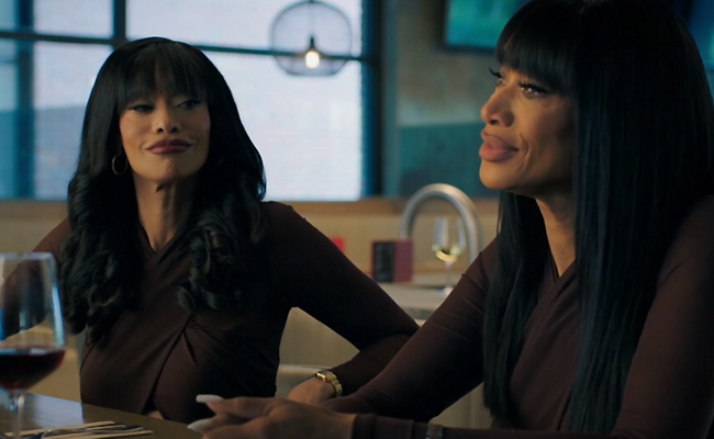 I have to admit I really don’t know who Tami Roman is except from seeing her in commercials for her VH1 relationship reality series Caught in the Act: Unfaithful, and as part of the Basketball Wives series. To me, she was someone who was famous for being famous (I only just learned she came onto the reality TV scene in the 1993 edition of The Real World on MTV). She has several acting gigs to her credit but this is my first real encounter with Ms. Roman and I have to say … I was very pleasantly surprised with her performance(s). It can be hard enough to play one character sometimes, but playing two with different personalities is a real challenge, especially when you have to be in the same scene with yourself, and Roman probably spends about 90% of the movie in scenes as both Ali and Drea. Watching her play the twins takes me back to the movie Big Business, in which Bette Midler and Lily Tomlin both played a set of twins, and how groundbreaking the special effects were at the time to achieve that illusion on screen. Seeing it now, while it still holds up, you can definitely spot some scenes where the technology struggled to match the ambitions. There appear to be no limitations here as director Gabriel Correa and his cinematographer and effects team give us some totally seamless shots featuring both Ali and Drea, a notable one near the beginning as Ali comes up behind Drea and they are both seen in a reflection in the mirror. Couple that with some skillful and smooth editing by Devin Taylor that goes from two shots (either with effects or the use of a body double seen from behind) to close-ups of Roman as both characters, and you will be convinced Roman herself has a twin who acted opposite her. These Lifetime movies generally don’t have huge budgets or lengthy shooting schedules, so what they have achieved here is beyond impressive and made the movie all the more enjoyable. Add in Sa’Rah Jones’ clever script that keeps you guessing as to who killed Kevin, while keeping the thrills and drama from tipping over into melodrama and you have a totally winning production.
