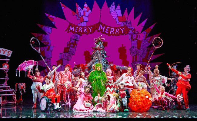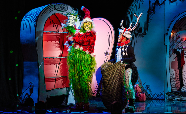 In December 1957, the children’s author known by the name Dr. Seuss released a new book written in rhyming verse about a village where its citizens loved Christmas, and a solitary creature living on the mountain overlooking the town had put up with their noisy celebrations for 53 years and decided now was the time to put a stop to the festivities. That story was adapted into an animated TV special in 1966, and like the book it has become a holiday classic. Of course, the story is Dr. Seuss’ How the Grinch Stole Christmas, and it has been adapted again into a live-action movie with Jim Carrey, as well as another feature-length animated film. A stage musical came along in 1998, and the show headed to Broadway for two holiday seasons in 2006 and 2007. Since then, the show has toured many times for the holidays, and was adapted as a TV special in 2020 with Matthew Morrison as The Grinch. Now that it’s that time of year, the Whos of Whoville, The Grinch and his dog Max are hitting the road again to bring Christmas joy to the masses.