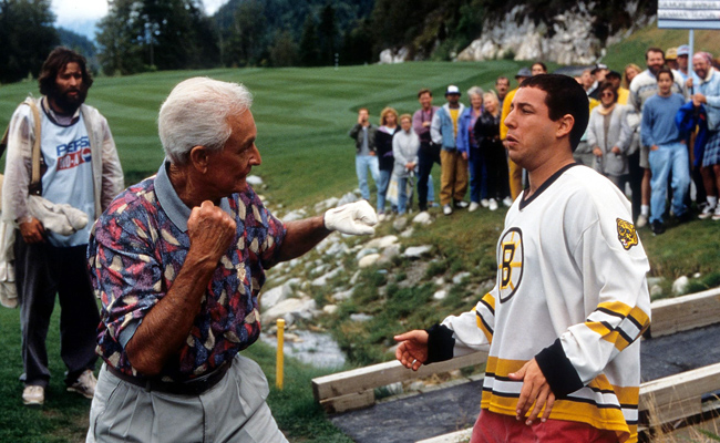 - Trivia: Ben Stiller appears in an uncredited roll. Bob Barker plays himself, and he and Sandler won an MTV Movie Award for Best Fight. The fight scene brought a new set of younger, male fans to The Price is Right. Judd Apatow did an uncredited rewrite on the script. Christopher McDonald initially turned down the role of Shooter McGavin because he was tired of playing villains, but after Kevin Costner rejected an offer and McDonald won a round of golf, he met with Sandler who gave him the freedom to improvise the role so it wasn’t ‘Villain 101’.