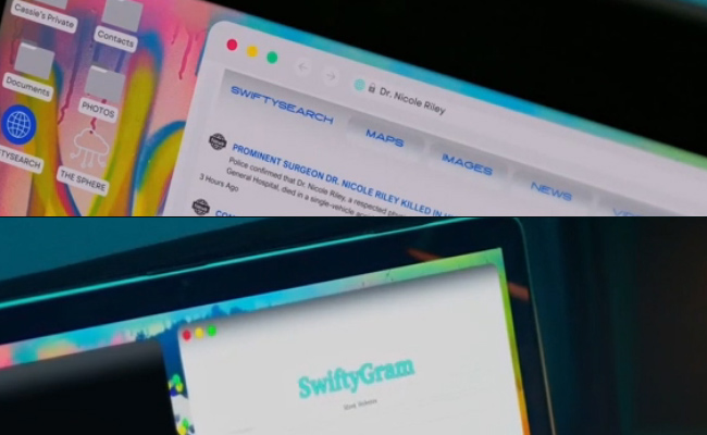 And we have to mention again that these TV movies always seem to come up with creative names for any online search engines seen on screen to avoid using Google or other well-known names. This time out there are two search engines seen on screen — Swiftysearch and SwiftyGram (a ‘dark web’ search engine).