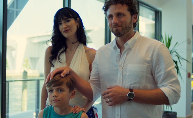 Britton Webb is also saddled with the typical cop character who always thinks people are over-reacting to situations. Even though he’s friends with Nicole … and it’s hard to tell if there is a romantic spark between them … he still treats her like she’s just a hysterical woman when she comes to him with her research about Jacob. Even when he’s got the DNA, he’s in no rush to get the results — and you’d think that would be a top priority considering the people in question are on vacation and could leave at any minute — until he picks up on Nicole’s odd ‘I’m out of here’ behavior. Jace Greenwood — who isn’t even credited at the end of the movie! — does a nice job of making Rex’s plight believable, able to turn on tears at the snap of a finger. When he first sees his son, his reaction is completely authentic, and he really makes the audience sympathize with him. But he has his own secrets, and Greenwood does a really good job of never revealing them. Smith Gilbert is a fine child actor, making Jacob seem like a total innocent, but I’m not sure how long he’s been with Tom and Lori for him to have completely accepted them as his parents. Matt Campanella has taken the best bullying performances of Thomas F. Wilson as Biff in Back to the Future and Mark Holton as Francis in Pee-Wee’s Big Adventure, making his unnamed and uncredited Older Bully character a guy who really deserves a punch in the face. Terry Farley as Brad, the hotel manager, does a nice job of clutching his pearls when faced with a bad review from Tom, but his actions of trying to call the room when the police arrive suddenly makes us wonder — is he in on this with Tom and Lori? He’s not, but it’s all filmed and acted in such a way that it becomes a question. (Of course, Brad should have figured the cops wanted an element of surprise, but the story needed the convenient plot device to get everyone out of the hotel and to the beach house for the climax.)