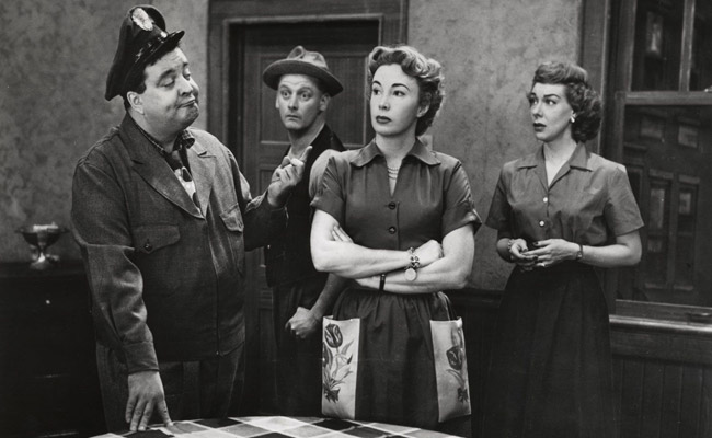 The Honeymooners was based on a recurring sketch on Jackie Gleason’s variety series, first on the DuMont network’s Cavalcade of Stars, which Gleason hosted, and then on The Jackie Gleason Show on CBS. While the show was the Number 2 show in the US at first, it eventually dropped to 19 and production ended after 39 episodes, now referred to as the ‘Classic 39’. Gleason would continue to revive the characters until 1978. It was one of the first American TV series to portray working class married couples in a gritty, non-idyllic manner. Each episode was self-contained and there was no continuity between episodes. On one episode the Kramdens have a TV or a telephone, in the next they don’t. In one episode the Kramdens get a dog, which Ralph grows to love and decides to keep it and some other dogs, but in the next episode they are gone and never mentioned again. Gleason’s three-year deal with CBS, worth $11 million at the time, required two seasons and 78 episodes of The Honeymooners with the option for a third season. The series was budgeted at $65,000 per episode for Season 1 and $70,000 for Season 2, with all production costs paid from that budget including Art Carney’s $3,500 per week salary, Audrey Meadows’ $2,000 per week, and Joyce Randolph’s $500 a week (she did not appear in every episode). Meadows was reportedly the only cast member to receive residuals from rebroadcasts of the show because her lawyer, who was also her brother, inserted language into her contract to that effect. Randolph received payment from the ‘lost’ Honeymooners episodes from the variety shows when they were released. The show was sponsored by Buick, but all references to the company were removed for Syndication. The show began to run out of steam early as it faced stiff competition from The Perry Como Show on NBC, the Number 1 program on television, and the writers felt confined by the 30-minute format whereas the sketches on the variety show could run longer. Gleason himself felt they were running out of ideas, and he and the network agreed to end the show after one season as Gleason did not want to cheapen the show just to keep it on the air. He eventually sold the films of the ‘Classic 39’ episodes to CBS for $1.5 million. The series was performed live and recorded onto film using Electronicam technology, which allowed for a live performance to be captured directly onto film resulting in a superior picture and sound quality than most shows would get with kinescopes (filmed recordings from a TV monitor of a live performance). Gleason did not like to fully rehearse because it would take away from the spontaneity, so the cast developed visual cues for the others if someone forgot a line or flubbed an action that was to be performed. The show’s theme song, ‘You’re My Greatest Love’, had lyrics but they were never sung. After the series ended, The Jackie Gleason Show returned the following week, and The Honeymooners were a part of the series, with eight episodes produced as full one-hour specials. 20 additional sketches of various lengths were also performed over the course of the season. Gleason revived his variety show in 1962, with The Honeymooners sketches included whenever Art Carney was available. Sue Ane Langdon and Patricia Wilson replaced Meadows and Randolph for two episodes. The Jackie Gleason Show returned again in 1966, and The Honeymooners were seen in color for the first time. As the new series was taped in Miami, Meadows and Randolph decided not to relocate so their roles were filled by Sheila MacRae and Jane Kean. Gleason was okay with the recast, but insisted Carney was the only actor to play Ed Norton. In 1967, the original Alice Kramden, Pert Kelton, made one of her last appearances before her death in 1968 as Alice’s mother. The show ended in a dispute with the network as Gleason wanted to continue the variety show with Honeymooners sketches interspersed while CBS wanted full one-hour Honeymooners episodes. Gleason, Carney, MacRae and Kean reunited for a sketch in a Gleason CBS special in 1973. Four one-hour specials aired on ABC between 1976 and 1978 with Meadows returning as Alice, while Kean remained as Trixie. These were the final Honeymooners productions. Over the course of the various broadcasts, Art Carney won five Emmy Awards for his portrayal of Ed Norton, and was nominated for another two. Meadows was nominated four times and won once, while Gleason received a single nomination in 1956.