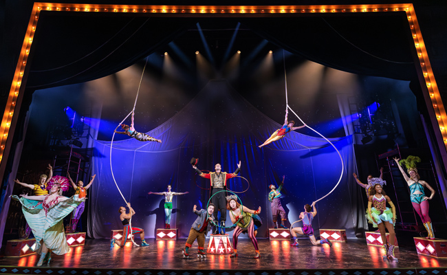 Jacob gets involved with a whole troupe of circus folk — friendly but broken down Camel (a charismatic Javier Garcia), snippy clown Walter (a highly engaging Tyler West), gruff foreman Wade (Grant Huneycutt in a demanding physical and vocal role) and Barbara (Ruby Gibbs — who doesn’t appear much but makes the most of each of her lines). But he also meets performer Marlena (Helen Krushinski in a killer performance, both in terms of singing and dancing) and ringmaster August (Connor Sullivan in a well done villainous role).